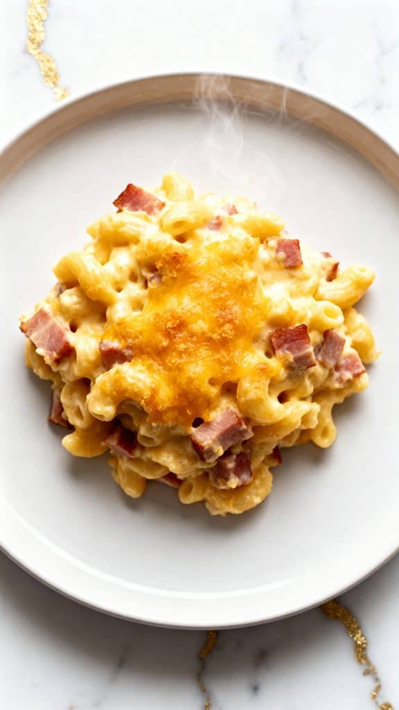 It’s perfect when you’ve got leftover ham or just want something hearty and satisfying. It tastes like homemade mac and cheese with a cozy, baked twist.