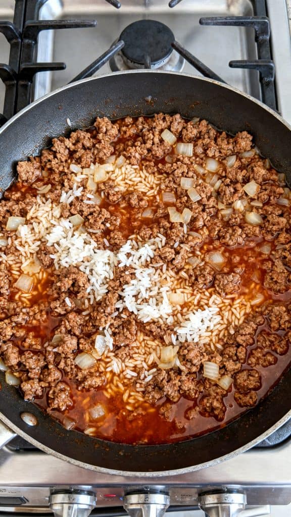 - Rice absorbs flavor. As it cooks in beef broth and spices, it soaks up all that seasoning.