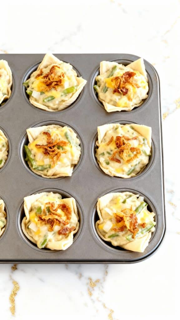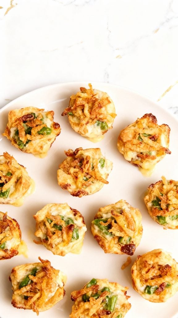 Love green bean casserole but want something fun and party-friendly? These mini green bean casserole bites have creamy green beans, crispy onions, and cozy flavor in every golden little cup.