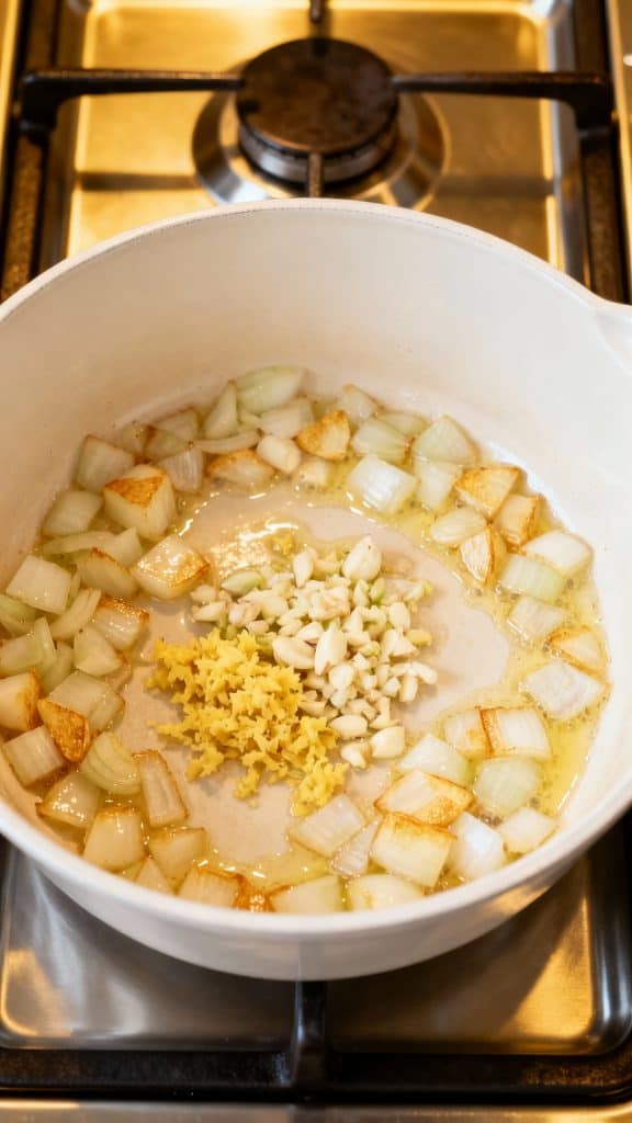 Step 1: Sauté Onion, Garlic, and Ginger