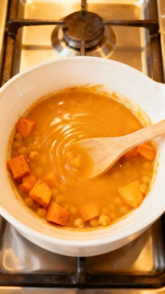 Step 3: Add Sweet Potatoes and Chickpeas