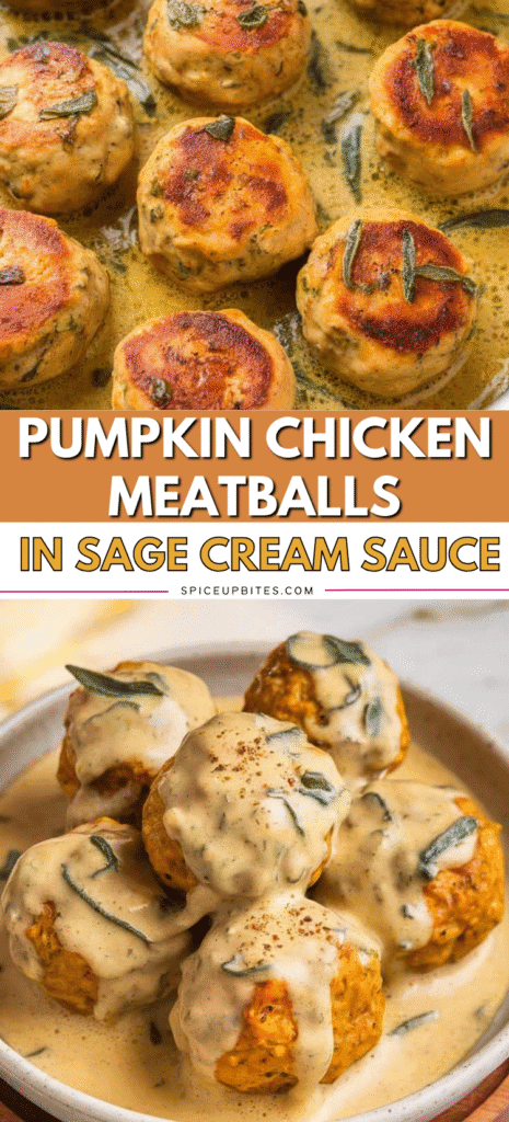 Pumpkin adds moisture and natural starch, keeping the lean ground chicken tender and juicy. Breadcrumbs bind everything while soaking up the extra moisture, so the meatballs hold their shape. The cream balances the sharpness of garlic and sage, and the fat helps carry the flavor of the herbs.