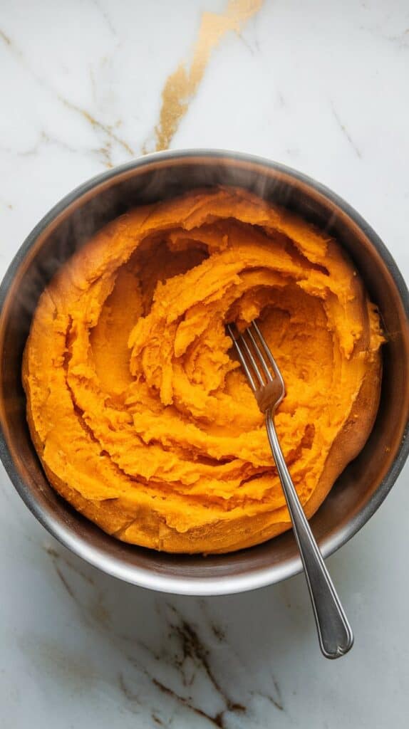 Once roasted, mash the butternut squash with a fork until smooth and creamy.
