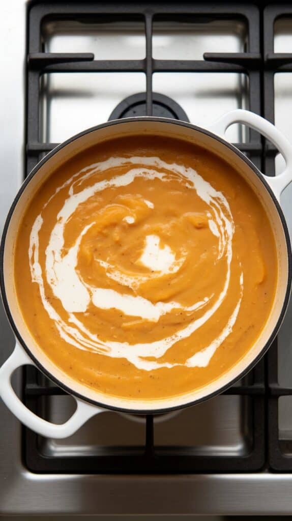 Turn off the heat and carefully transfer the soup to a blender (or use an immersion blender right in the pot). Blend until completely smooth and creamy.