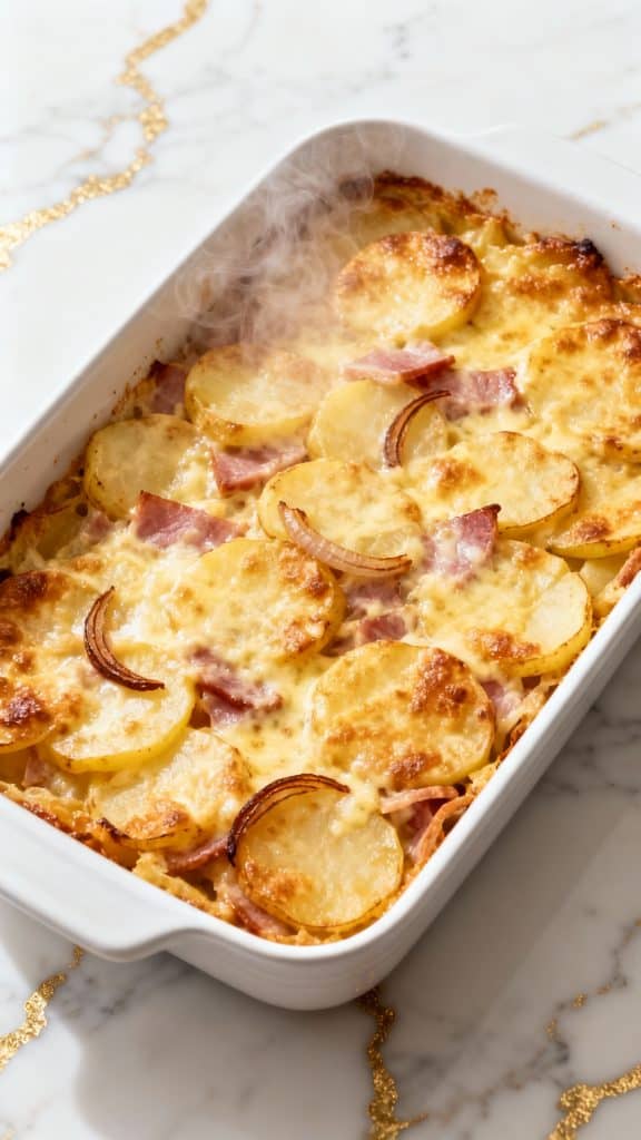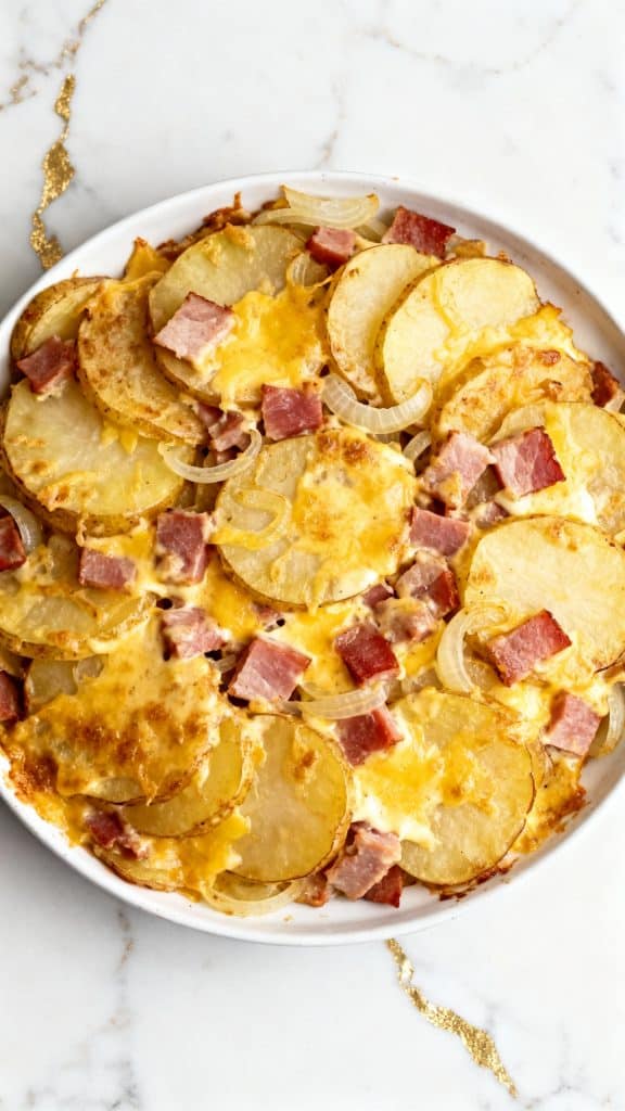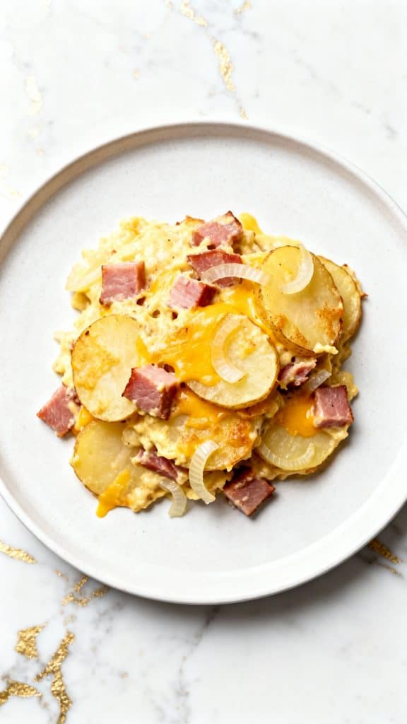 This dish reminds me of Sunday dinners growing up—always warm, always satisfying. We didn’t have it often, but when we did, it was usually after a big holiday when there was leftover ham in the fridge. My mom would slice up potatoes by hand and layer them into a casserole dish like she was building something special. And it was.