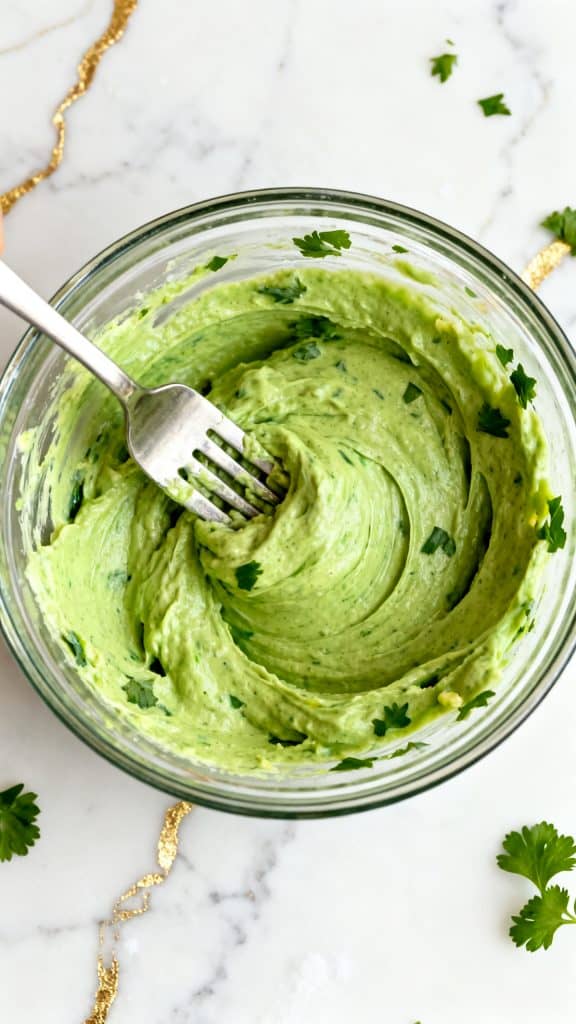 Mash the yolks with a fork until crumbly. Add 2 tablespoons mayo, 1 teaspoon Dijon mustard, 1/4 teaspoon garlic powder, 1/4 teaspoon salt, and 1 tablespoon chopped parsley. Add 2–3 drops of green food coloring. Mix until smooth.