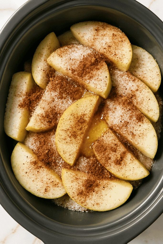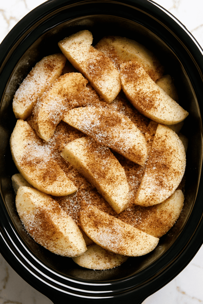 Slow cooking breaks down the apples’ natural pectin, thickening the mixture without any added thickeners. The sugars help draw out moisture and concentrate the flavor. Leaving the lid off in the final hour lets moisture evaporate, giving it that rich, spreadable texture.
