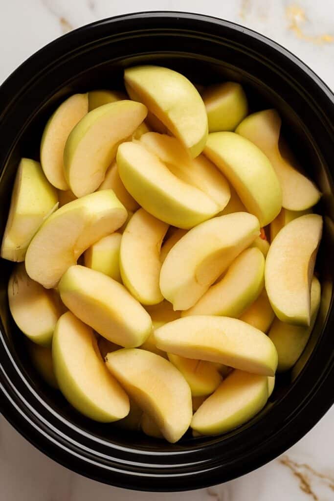 Place 6 pounds of peeled, cored, and sliced apples into your slow cooker.