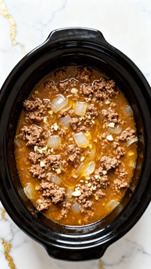 Set slow cooker to low for 4–5 hours or high for 2–3 hours, until onion is soft and flavors have blended.