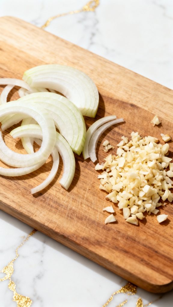 Step 2: Slice the Onion and Prep Garlic