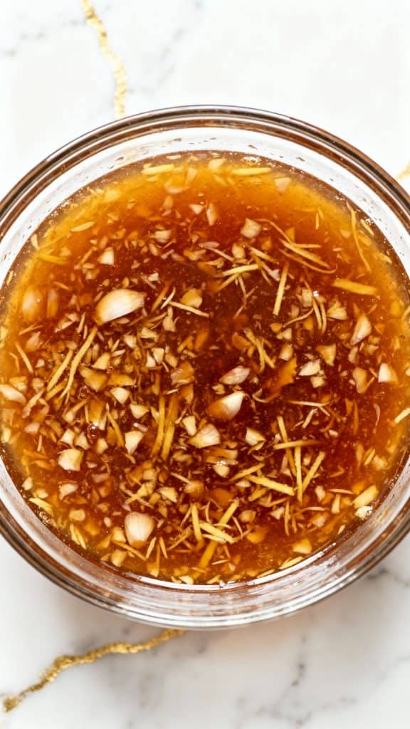 ½ cup honey, ¼ cup low-sodium soy sauce, ¼ cup ketchup, 2 tablespoons hoisin sauce, 1 tablespoon rice vinegar, 1 tablespoon minced garlic, and 1 teaspoon grated fresh ginger.