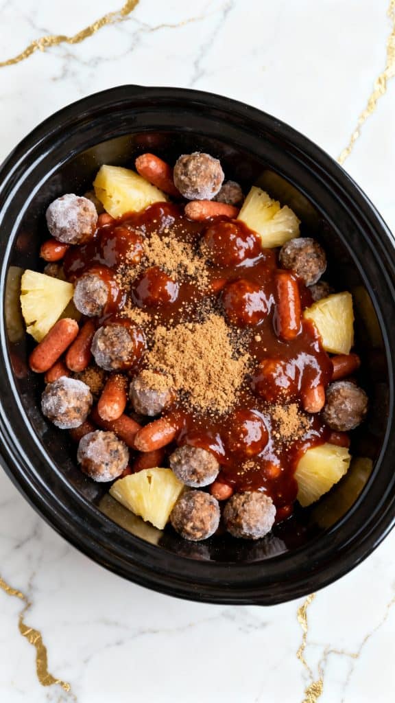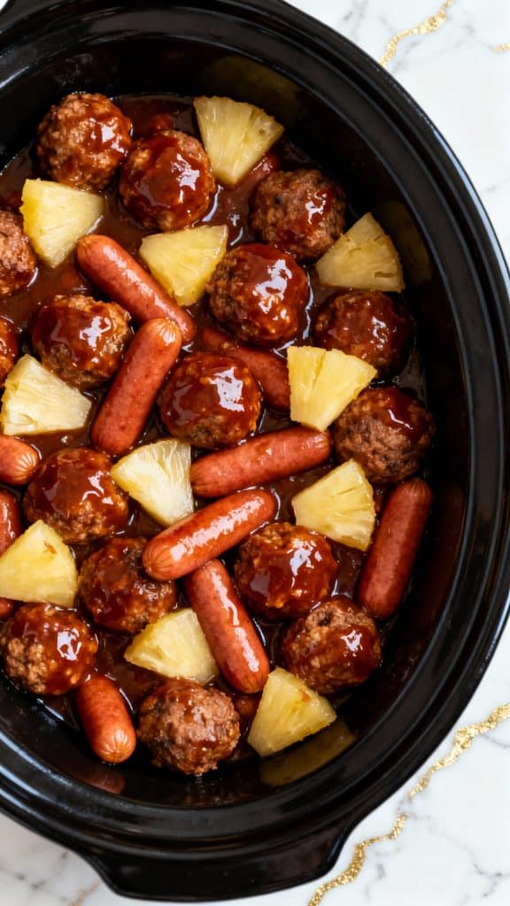 The pineapple juice has natural enzymes (like bromelain) that help tenderize the meatballs while cooking. Pair that with BBQ sauce and brown sugar, and you’ve got the perfect combo of acid, sweetness, and umami — which makes every bite taste balanced and rich. Slow cooking gives the flavors time to fully blend and sink into the meat.