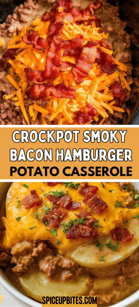 This Smoky Bacon Crockpot Hamburger Potato Casserole is creamy, cheesy, and loaded with layers of potatoes, ground beef, and smoky bacon. It’s pure comfort food made simple.
