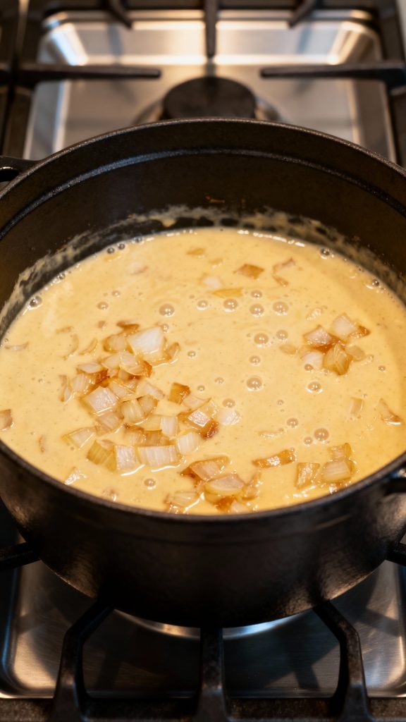 Sprinkle 1/2 cup of all-purpose flour into the pot. Stir constantly for 2–3 minutes until it forms a paste and starts to turn light brown.