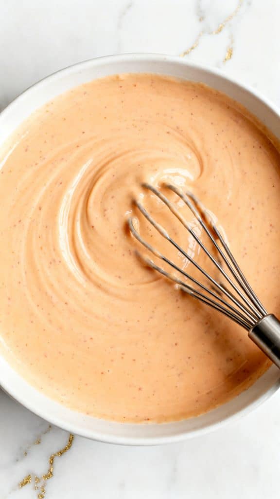 Use a rubber spatula to gently mix until all ingredients are evenly coated with the dressing.