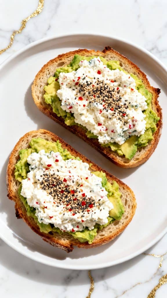 Cottage cheese is full of casein protein, which helps keep you full longer. The avocado adds healthy fats that help absorb fat-soluble vitamins, while the toast gives you the carbs your brain needs to stay focused. The mix of creamy, crunchy, spicy, and sweet hits every flavor zone.