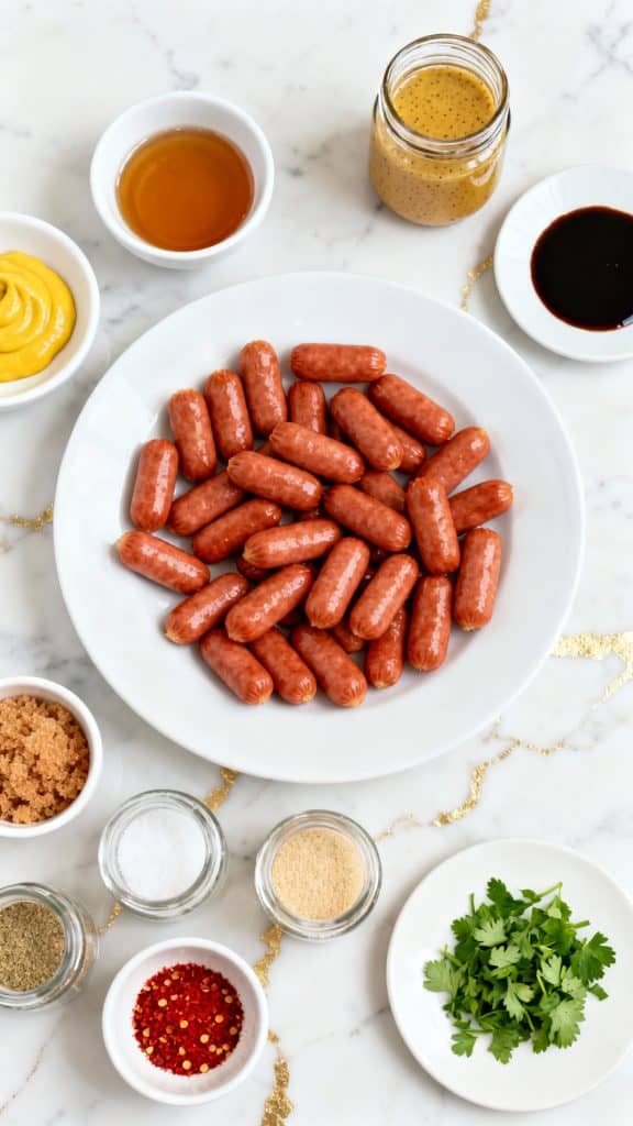 The sugars in the honey and brown sugar caramelize slowly in the crockpot, giving the sausages that deep sticky glaze. The mustard brings acidity, which balances out the sweetness, while sriracha adds heat without overpowering. The garlic and onion powders round it all out with flavor that clings to the sausages.