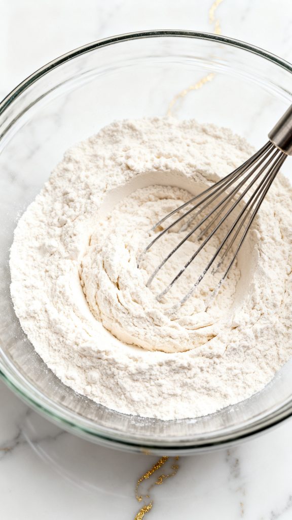 In a large mixing bowl, whisk together 1 cup flour, 1 tbsp sugar, 1 tsp baking powder, ½ tsp baking soda, and ¼ tsp salt.