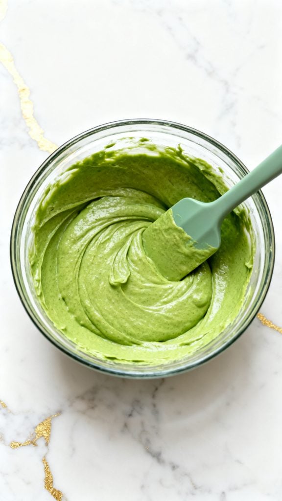 Add ¼ tsp green food dye and mix again until color is even. Let the batter rest for 5 minutes.