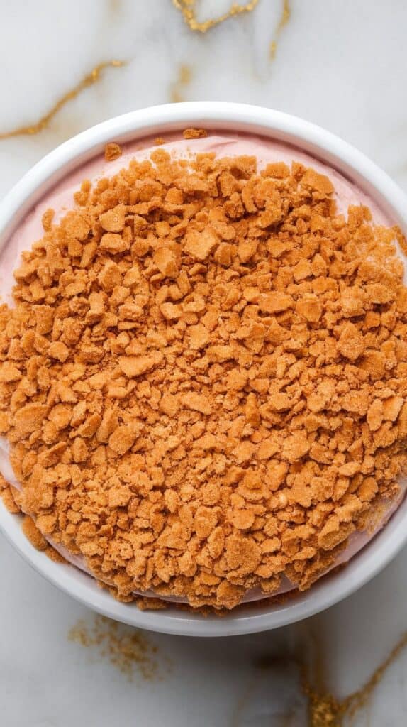 Pour the mixture into a container and sprinkle 1/4 cup crushed graham crackers evenly over the top. Gently swirl in if you like.