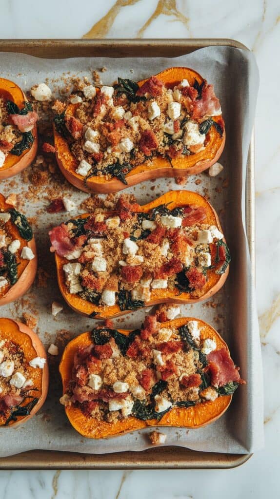 Roasting the squash brings out its natural sugars, making it tender and slightly sweet. The fat from the bacon adds richness and depth, while the feta adds salt and tang that balances it all. Spinach adds earthiness and color. The combo of textures—creamy squash, chewy bacon, soft spinach, and slightly melted feta—is key.