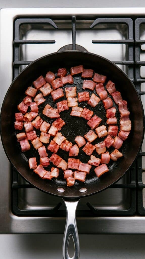 While the squash roasts, cook 4 slices chopped bacon in a skillet over medium heat until crispy, about 6–8 minutes. Transfer to a paper towel-lined plate to drain.