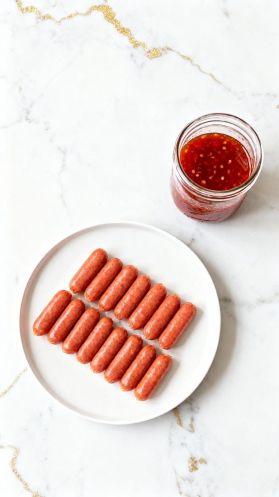 - 2 (14 oz) packages cocktail sausages (like Lit’l Smokies)