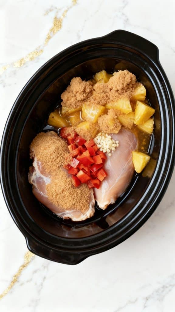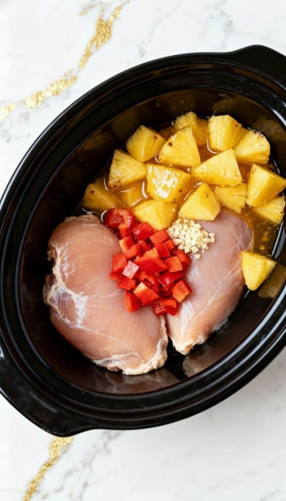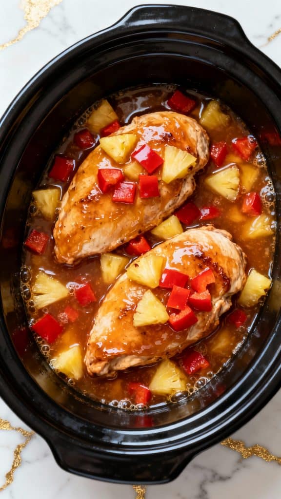 You’ll love how it all comes together in the crockpot—super juicy chicken, a sticky-sweet sauce, and those tender pineapples that melt in your mouth.