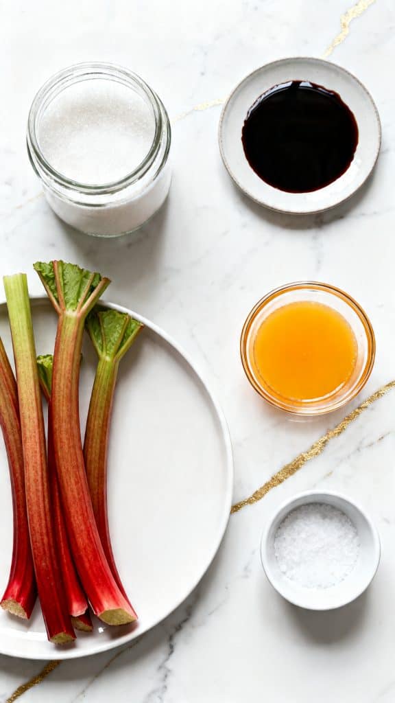 Rhubarb has a lot of water, so roasting helps it soften while releasing its juices. The 1/2 cup sugar pulls out that moisture and mixes with the orange juice to create a simple syrup right in the pan. The oven heat softens the rhubarb’s fibers, which gives you that tender, jammy texture. Vanilla rounds out the sharp tartness, and the little bit of salt helps the whole flavor pop.