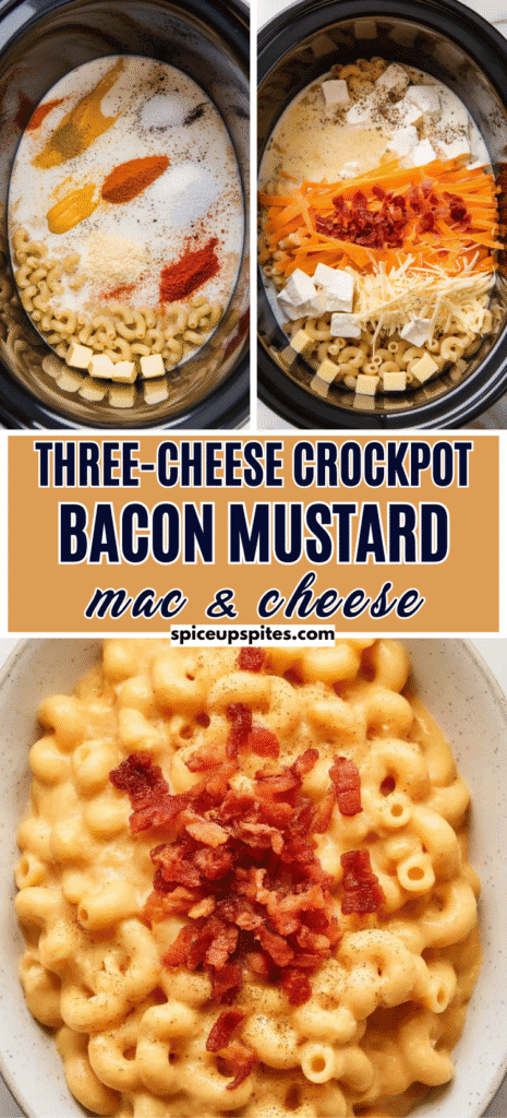 Three-Cheese Crockpot Mac and Cheese with Bacon and Mustard