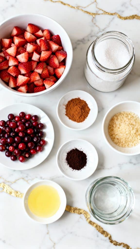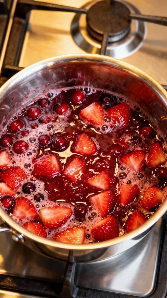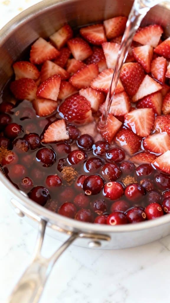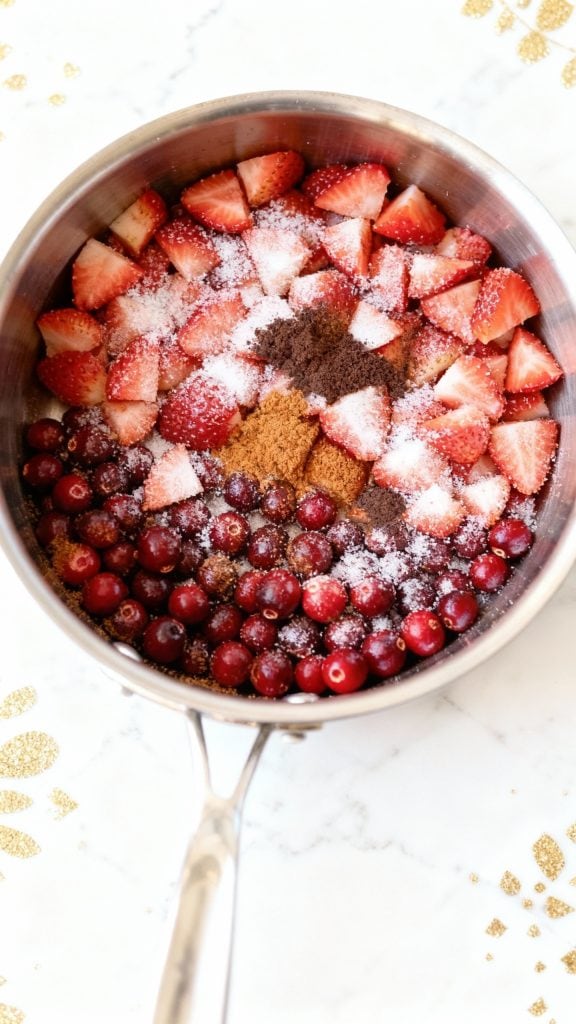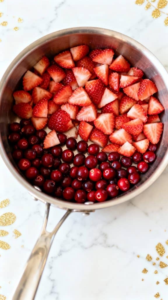 In a medium saucepan, combine 2 cups chopped thawed strawberries and 1½ cups cranberries.