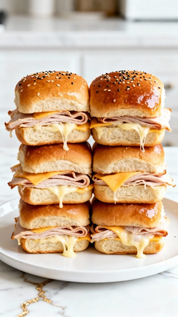 The layering of cheese both under and over the turkey locks in moisture, keeping the sliders from drying out. Hawaiian rolls are soft and slightly sweet, which balances the savory turkey and cheese. The butter mixture on top adds flavor and helps the rolls crisp perfectly during baking.