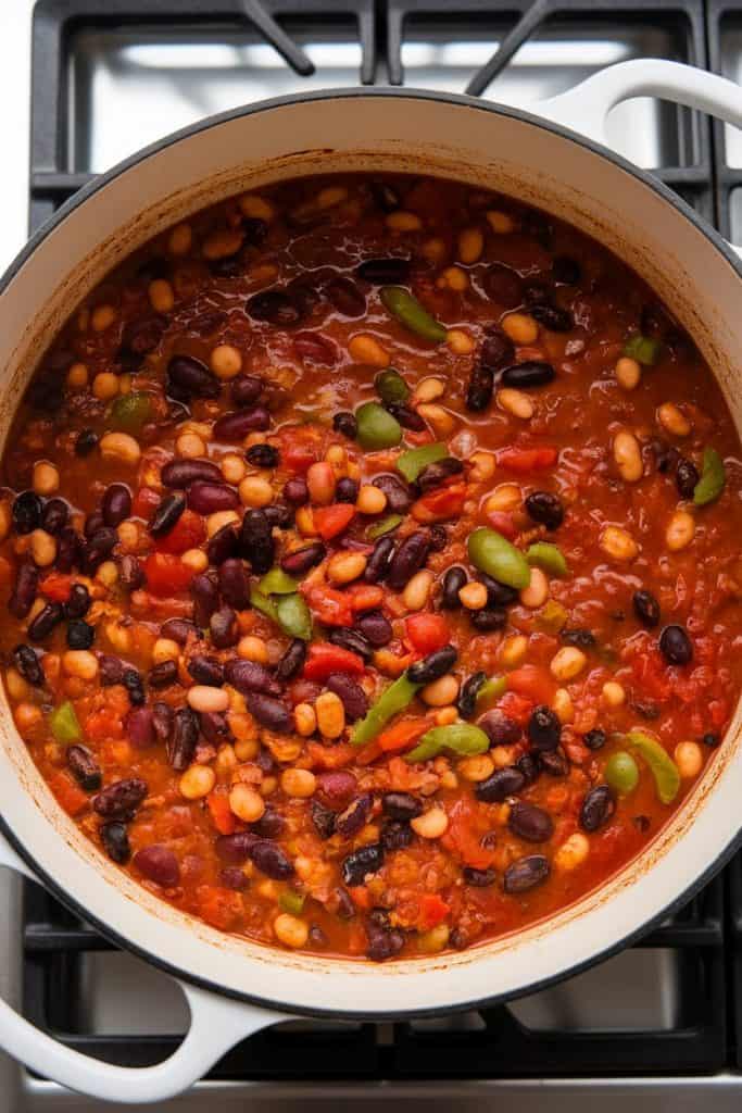It’s packed with flavor from spices, tomatoes, and three kinds of beans, and it only gets better the longer it simmers. Perfect for a cozy night in or a big batch for the week.